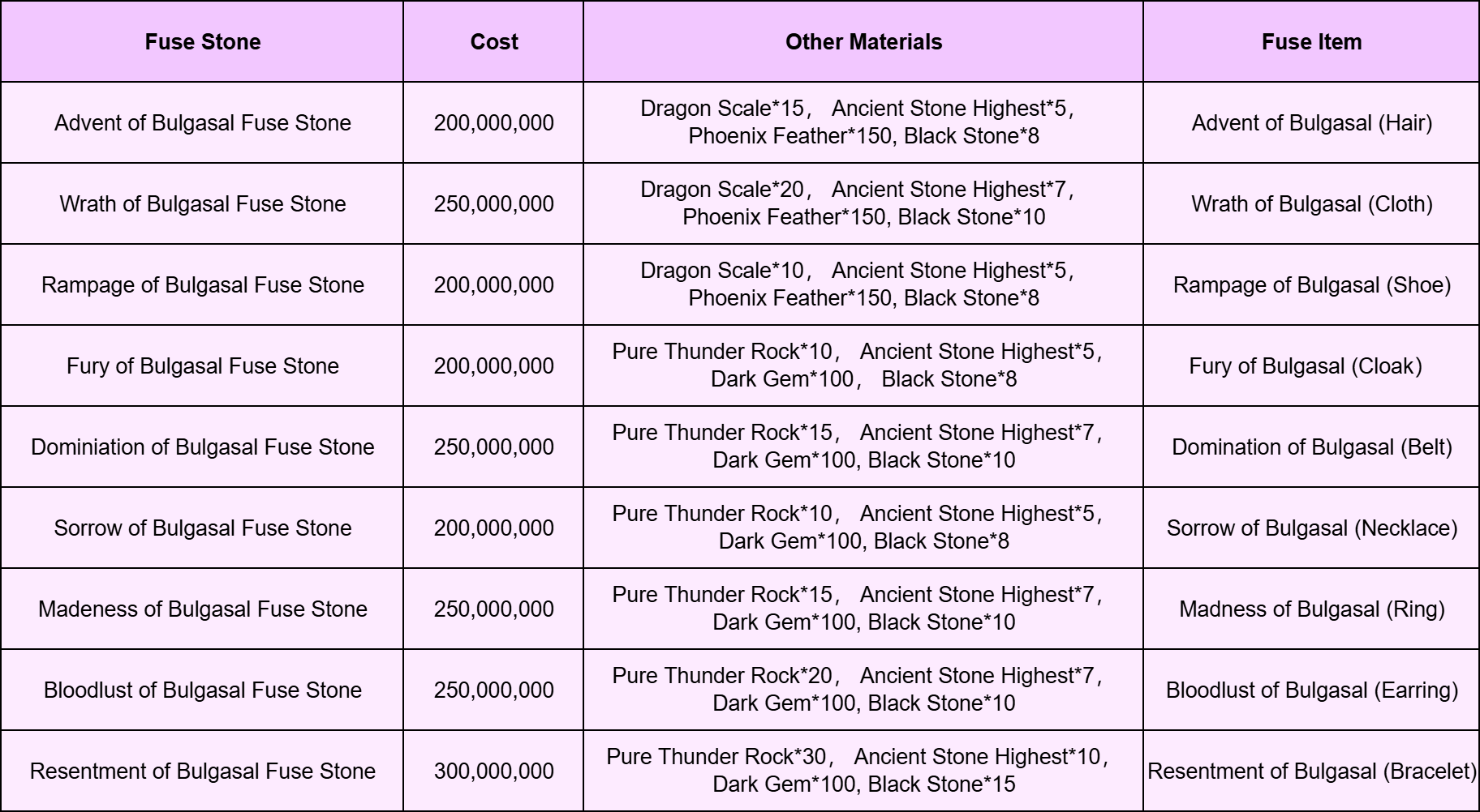 Each Bulgasal Fuse Stone can only be used to craft a specific equipment part.